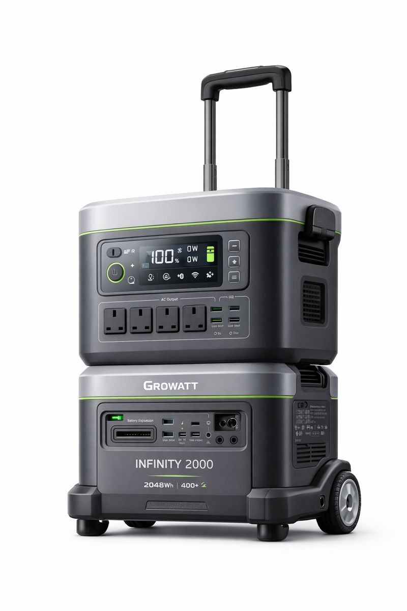 De Growatt Infinity 2000 Pro combineert kracht, uitbreidbaarheid en betrouwbaarheid in één compact systeem. Perfect als noodstroomvoorziening, voor professioneel gebruik of als flexibele energiebron onderweg.