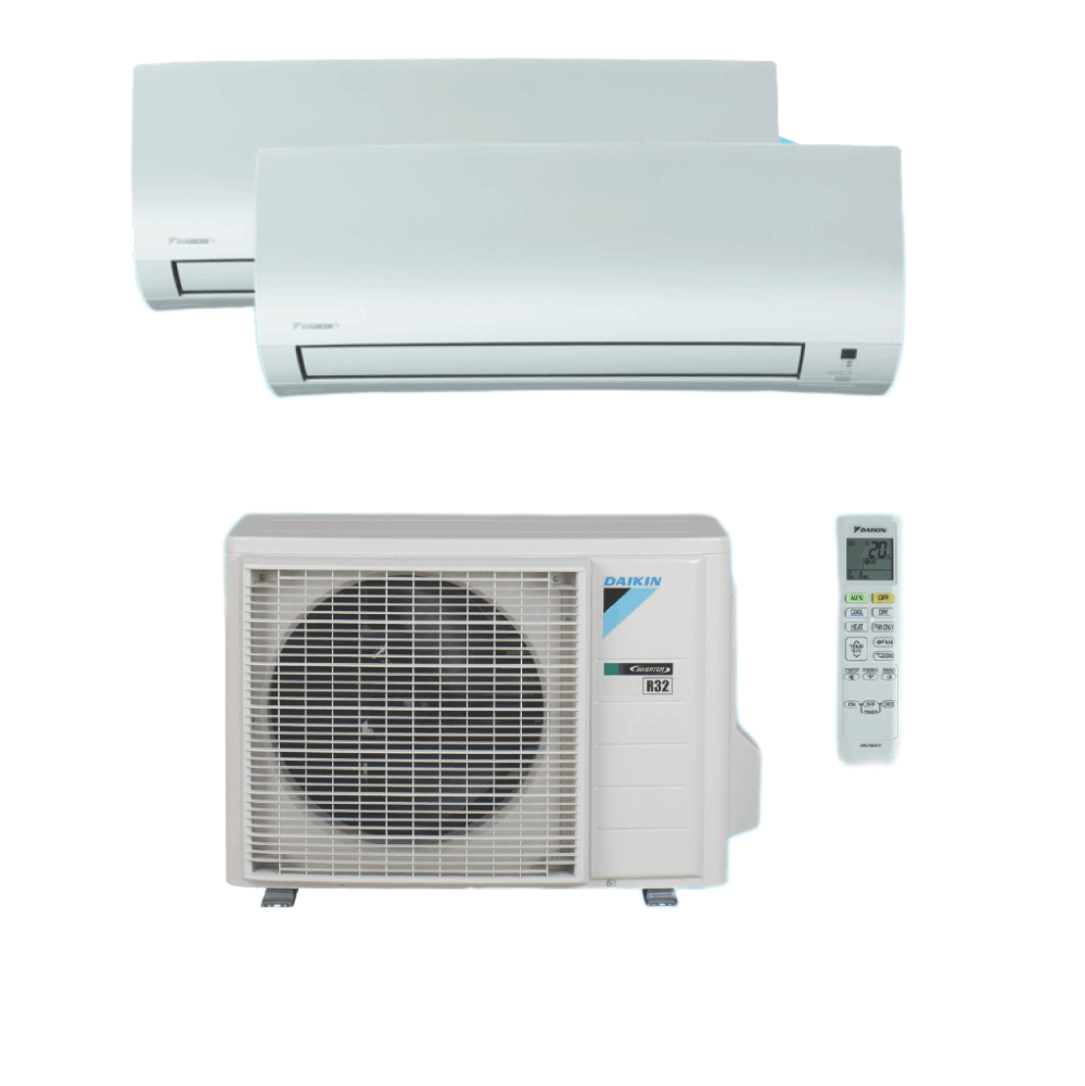 De Daikin Comfora dual split unit is ontworpen voor maximale efficiëntie en comfort, met twee binnenunits van 3,5 kW die verbonden zijn met een krachtige 5 kW buitenunit. Dit systeem biedt een stille en efficiënte koeling en verwarming voor meerdere kamers, waardoor het ideaal is voor zowel residentiële als commerciële toepassingen.